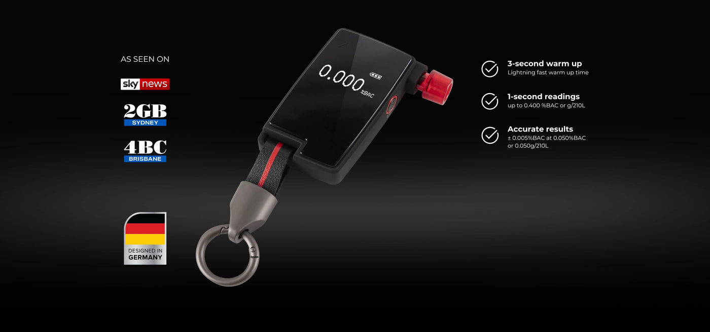 At just 65.6g, this palm-sized breathalyser delivers accurate readings in seconds. Built for convenience.